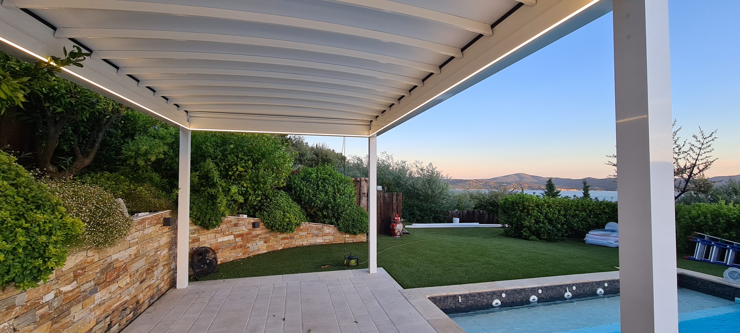 Éclairage LED intégré, capteurs pluie/vent, stores latéraux, parois vitrées coulissantes, chauffage rayonnant… La pergola bioclimatique est évolutive et personnalisable selon vos usages. Elle peut être adossée à la maison ou autoportante en îlot.