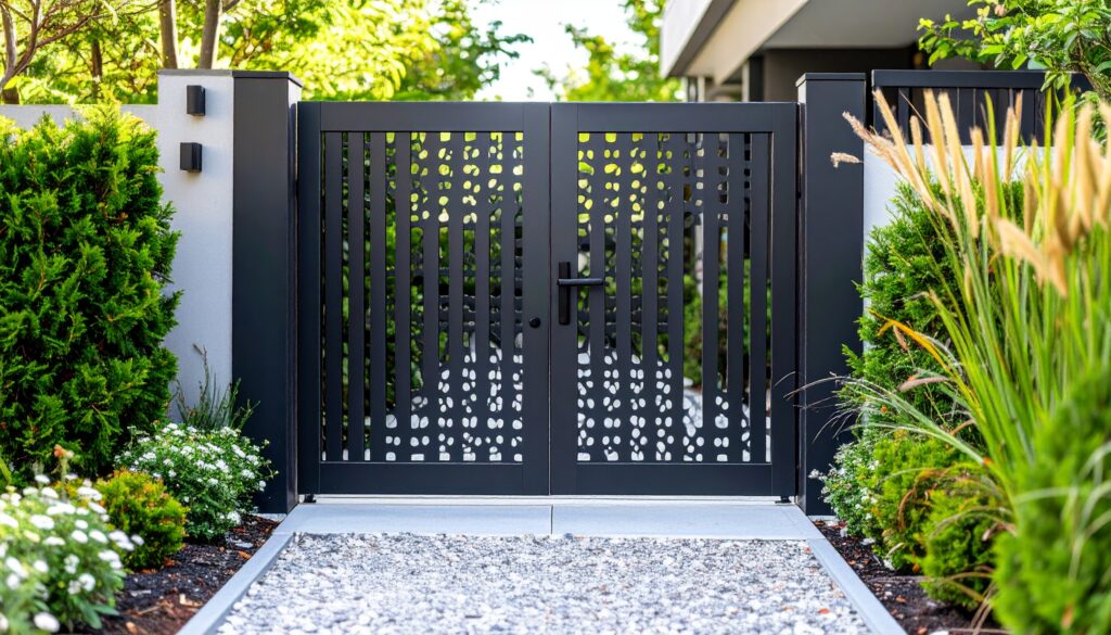 Choisissez parmi de nombreux modèles : ajouré, plein, semi-ajouré, avec lames verticales, horizontales ou tôle perforée. Chaque portillon est réalisé sur-mesure selon vos dimensions, vos goûts et les contraintes techniques de votre terrain.