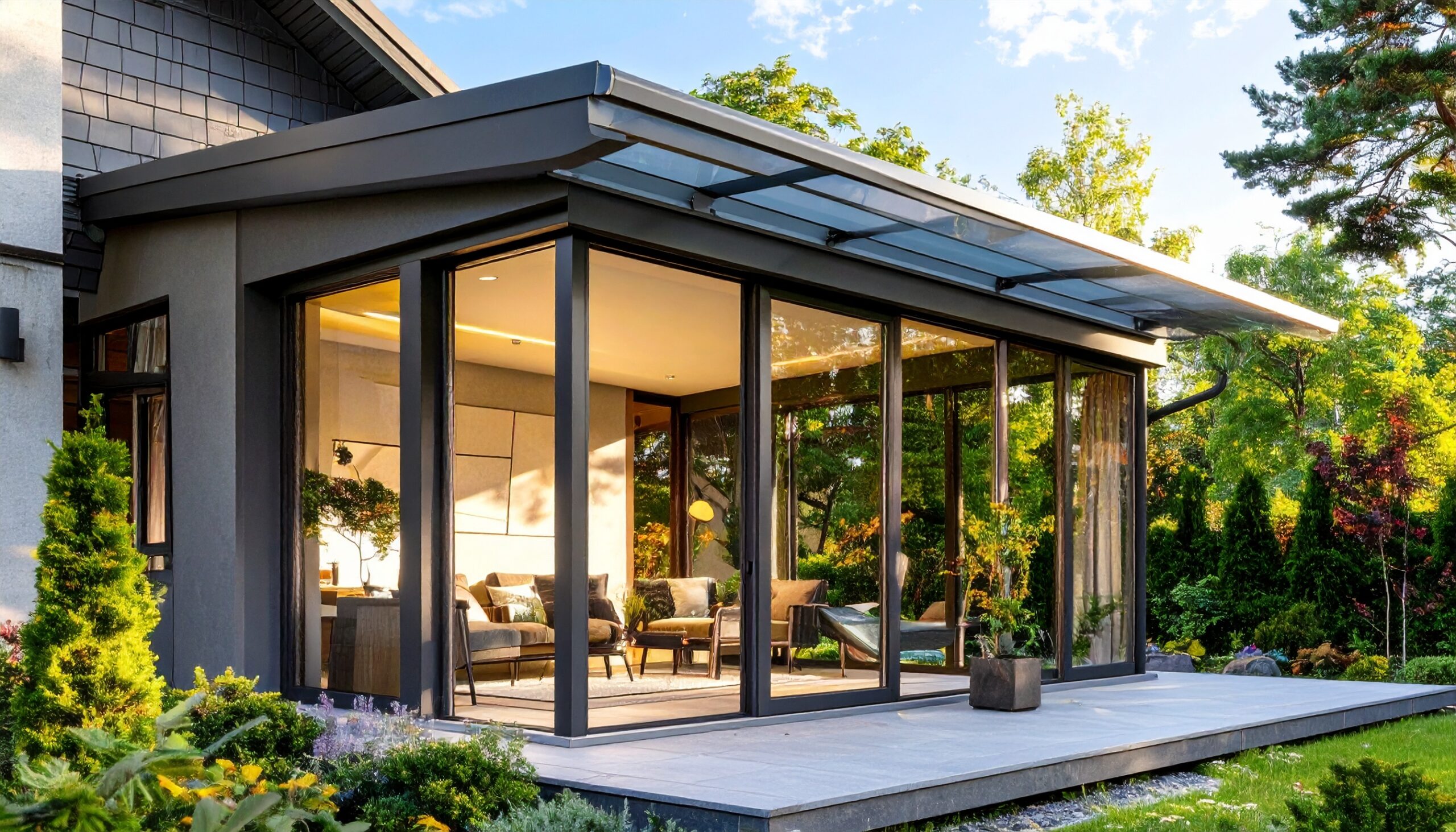 La véranda permet de créer un nouvel espace de vie baigné de lumière, utilisable toute l’année. Qu’elle serve de salon, de salle à manger ou de jardin d’hiver, elle valorise votre maison en apportant à la fois confort et élégance.